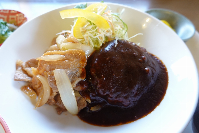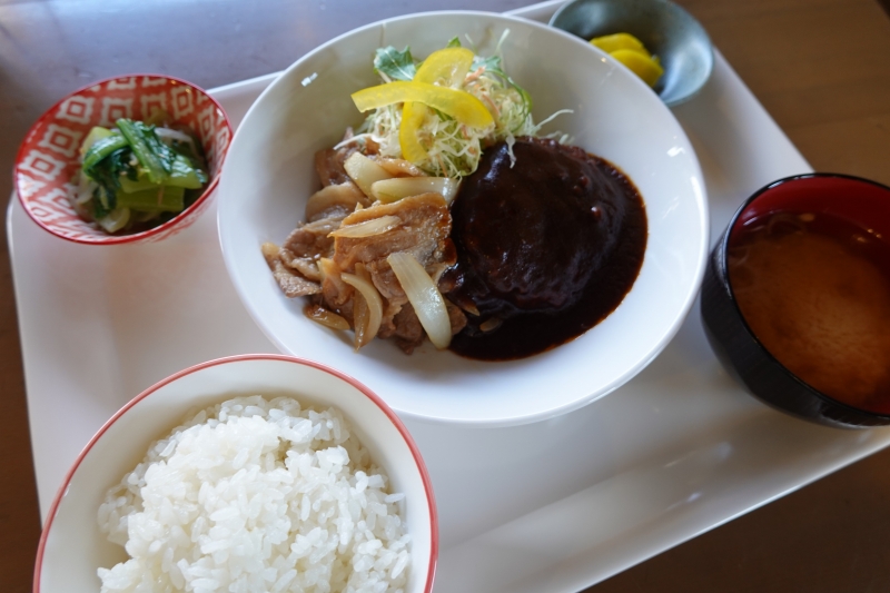 「本日の魚の定食」(950円~)は日替わりで、旬の魚などを焼き魚や煮魚といった調理方法で提供しています。また、がっつり食べたい人には「生姜焼き&ハンバーグ定食」(1400円)といったボリューム満点のセットメニューも。