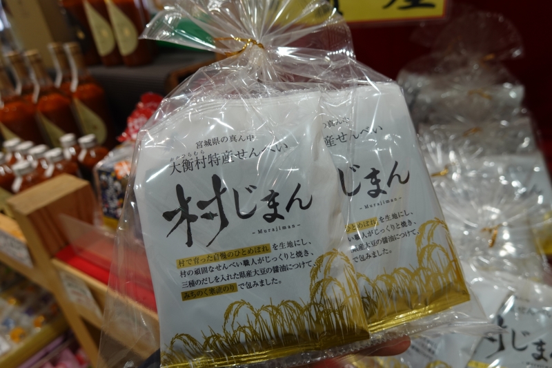 一番人気の商品は「大衡村特産せんべい 村じまん」。1969年創業の老舗せんべい店「加賀屋」と大衡村産業振興課、尚絅学院大学がコラボレーションし、試作を重ねて完成まで3年をかけた渾身の一品です。軽やかな食感と素朴な味わいが、何枚でも食べたくなるせんべいです。
